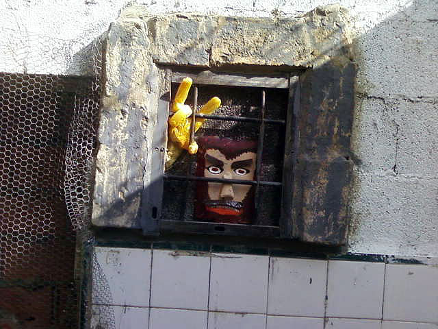 ...y que después fue trasladada a una ventana falsa donde el efecto de prisión está totalmente conseguido.